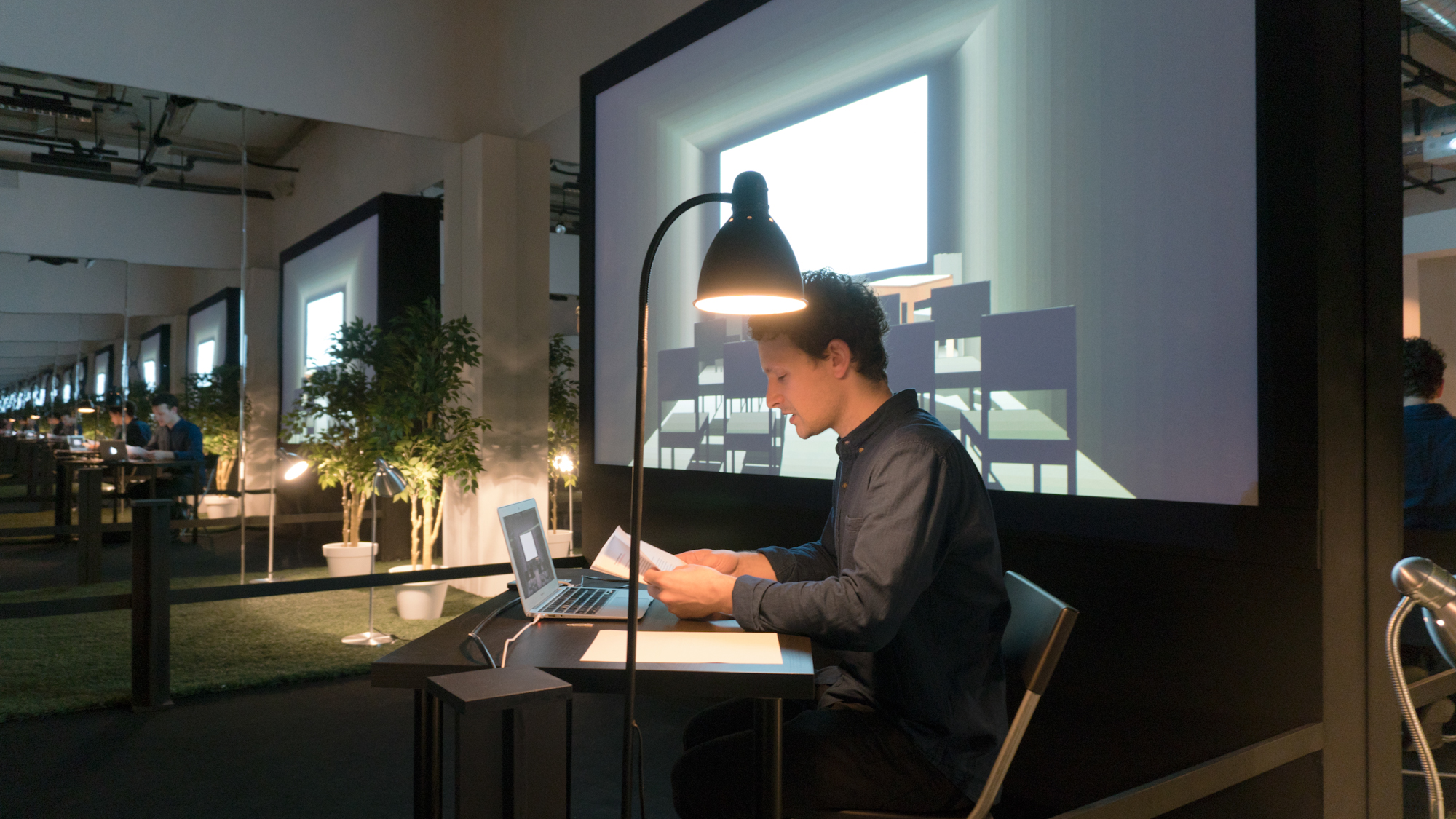 Architectural model, videos, text.