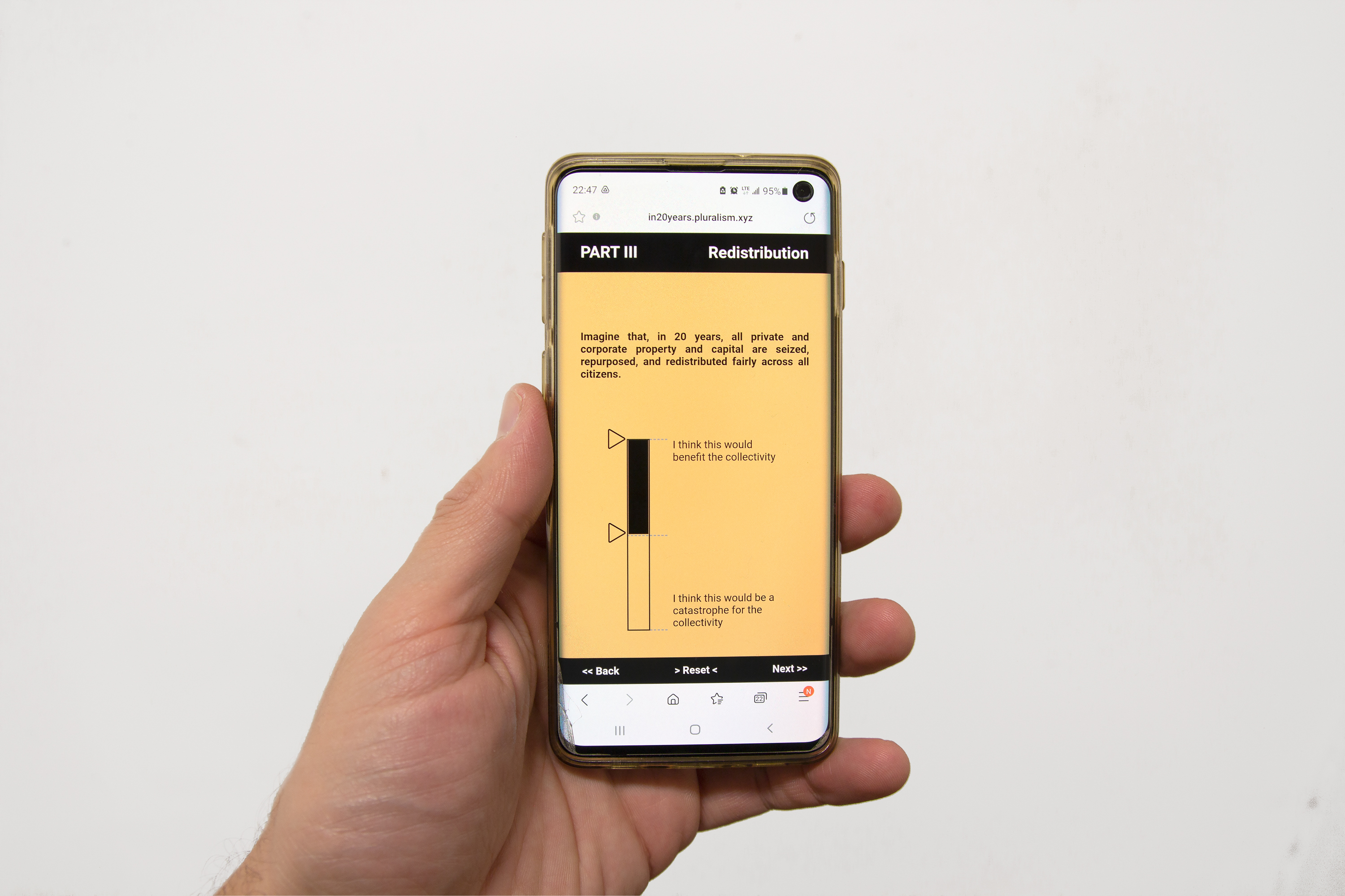 From 2019 to 2022, I designed surveys for my exhibitions. These invited visitors to express their views on a variety of existential issues addressed, though less explicitly, by the works.